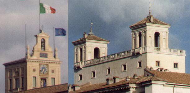 Logge del Palazzo del Quirinale e di Villa Medici Le logge dei palazzi costruiti in cima ai colli godono di una vista particolarmente bella sui monumenti di Roma. La loggia del Palazzo del Quirinale è chiamata il Torrino ed è chiusa. L'attuale (2003) Presidente della Repubblica Italiana, Carlo Azeglio Ciampi, è solito tenere un rinfresco nel Torrino con i suoi collaboratori più stretti la vigilia di Capodanno. Villa Medici è dominata da due aeree logge. Sia il Palazzo del Quirinale sia Villa Medici godono di una vista straordinaria sulla cupola di S. Pietro, specialmente quando il sole tramonta dietro di essa.