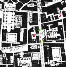 La vista è presa dal punto segnato in verde nella piantina del 1748, sotto.