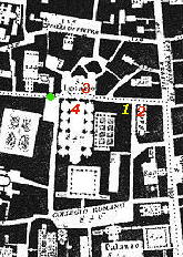 2) Oratorio del Caravita; 3) Costruzioni che formano il teatro di fronte alla chiesa.