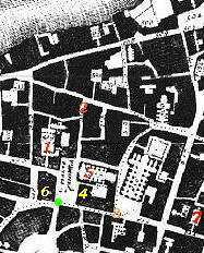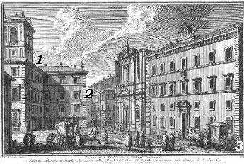 La piantina riporta anche il 4) Collegio Germanico; 5) S. Apollinare;