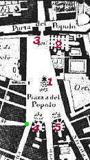 Porta del Popolo; 4) S. Maria dei Miracoli. La piantina del 1748 riporta anche