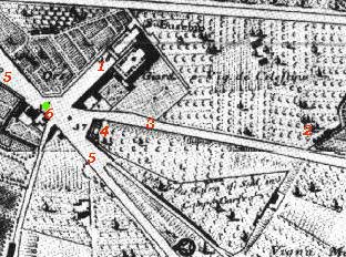 In questa pagina: Tavola di Giuseppe Vasi Com'è oggi S. Eusebio Rovine Romane Porta Magica Rovine dell'Aqua Iulia La Tavola (No. 49) ![]() La vista della modesta chiesa di S. Eusebio permette a Vasi di illustrare alcune Rovine Romane. La vista è presa dal punto segnato in verde nella pianta sotto. Nella descrizione relativa alla tavola Vasi faceva riferimento a: 1) Chiesa e Monasterio di S. Eusebio; 2) Derelict aqueducts; 3) Strada che porta a S. Bibiana; 4) Castello dell'Acqua Marcia; 5) Strada che va da S. Maria Maggiore a S. Croce in Gerusalemme. La piantina del 1748 riporta anche 6) Chiesa di S. Giuliano. ![]() ![]()